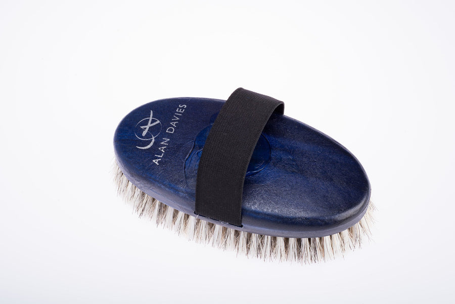 Alan Davies Face Brush to mała szczotka, która ma bardzo miękkie, ale skuteczne naturalne włosie końskie. Konie ją uwielbiają!