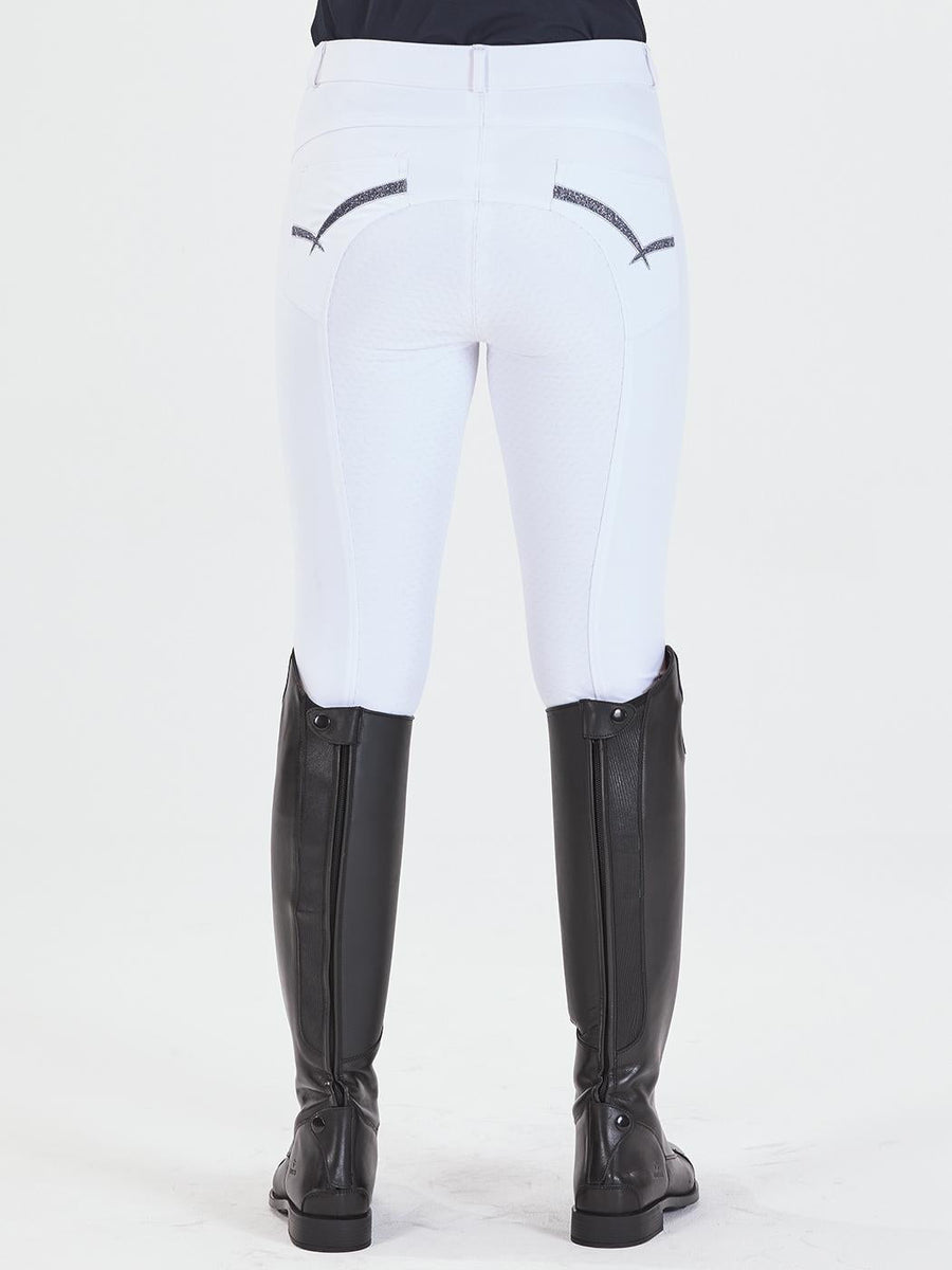 Pełne siedzenie Przylegająca tkanina od połowy łydki do wewnętrznej strony uda, łącznie z pełnym siedzeniem.