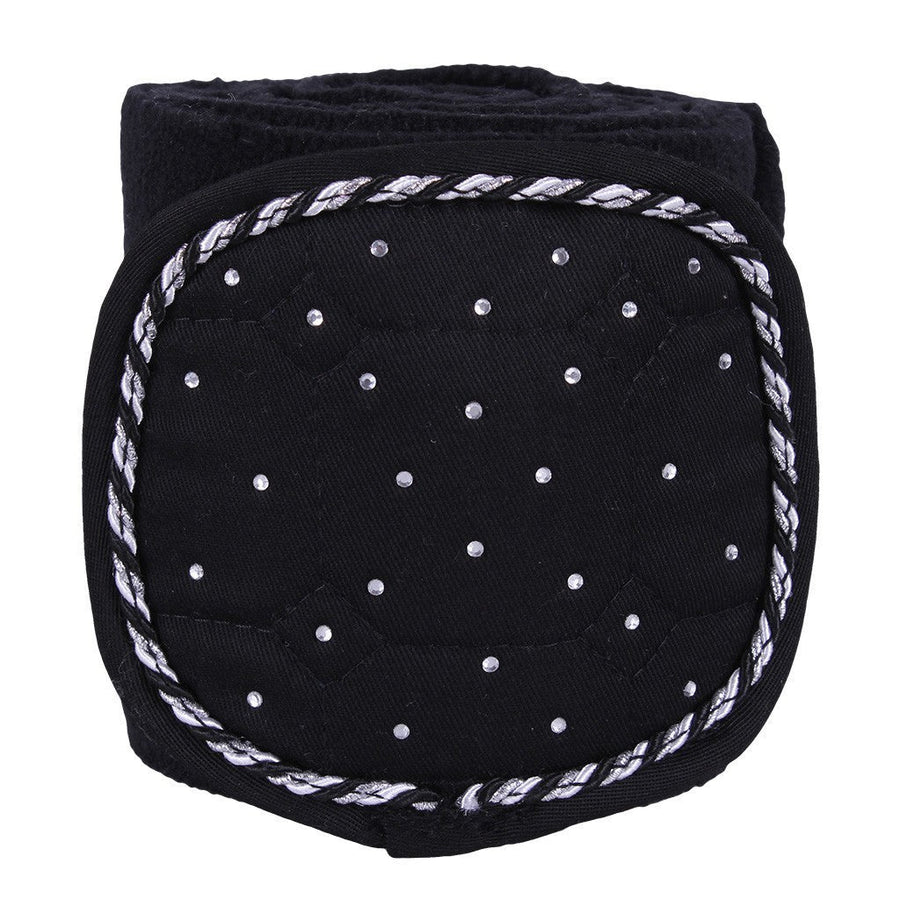 Zestaw czterech polarowych bandaży z zapięciem na rzep. Bandaże są wyposażone w naszywkę na rzep zdobioną cyrkoniami i ozdobnym sznurkiem. Naszywka jest regulowana, więc można ją umieścić na zewnętrznej stronie nogi.