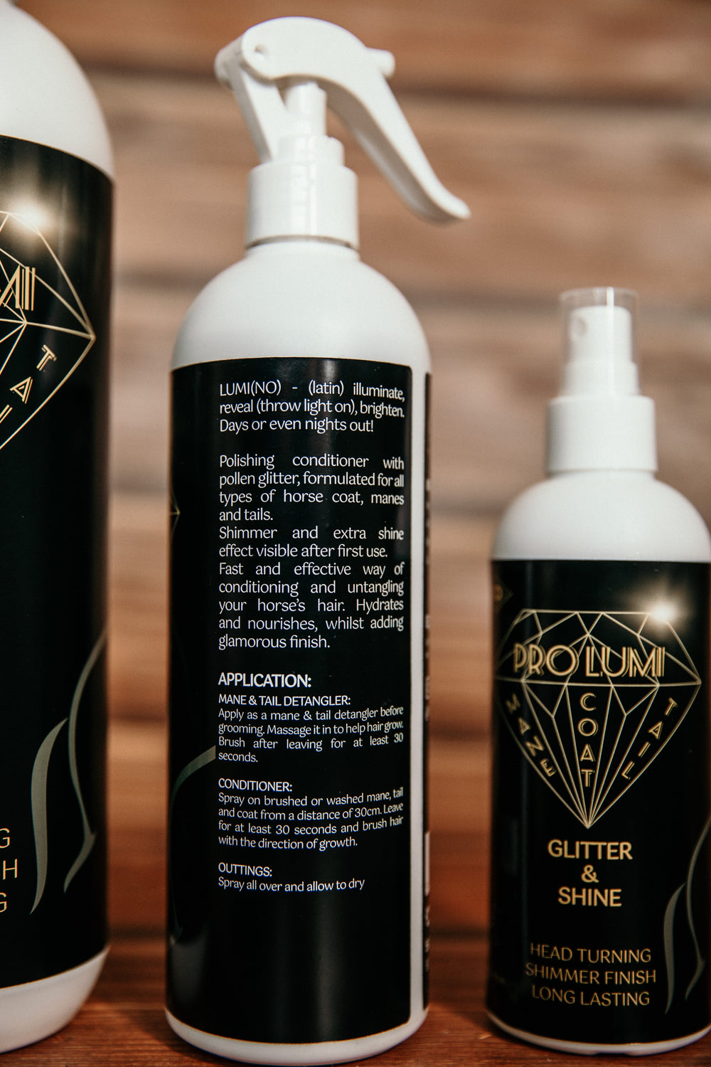 Zapewnia intensywną pielęgnację grzywy , ogona i sierści . Odpycha kurz i zapewnia długotrwały połysk . Zawiera glicerynę , która działa jak ochronna powłoka przed utratą wilgoci z trzonu włosa . D- pantenol i ekstrakt z aloesu zmniejszają swędzenie , zapobiegają łupieżowi i sprawiają, że włosy są miękkie i łatwe w pielęgnacji . Sprawia , że Twój koń wygląda , czuje się i pachnie wspaniale .