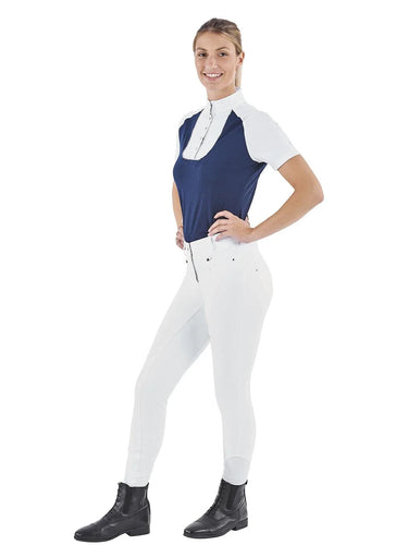 Sportowe legginsy do jazdy konnej wykonane z funkcjonalnego materiału high-tech z modnymi wstawkami z siateczki - idealne na letnie pokazy.