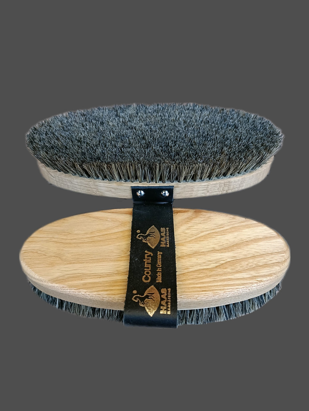 Olejowany drewniany grzbiet i mocne, naturalne włosie nadają tej szczotce pielęgnacyjnej szczególnego charakteru.