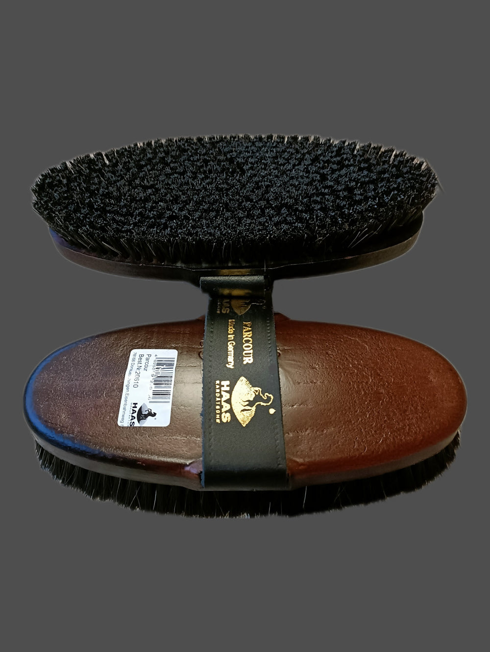 Szczotka Parcour firmy HAAS jest wykonana z szarego i czarnego włosia końskiego, aby zapewnić niezawodne czyszczenie ciemniejszych odcieni sierści, pozostawiając je czystymi i lśniącymi. Wykonana z wytrzymałego plastikowego tyłu i skórzanego uchwytu, ta szczotka oferuje trwałość i wygodny uchwyt, zapewniając jednocześnie łatwe czyszczenie. Ta damska szczotka (200 x 85 mm) ma tył z efektem drewna Woodbrow.